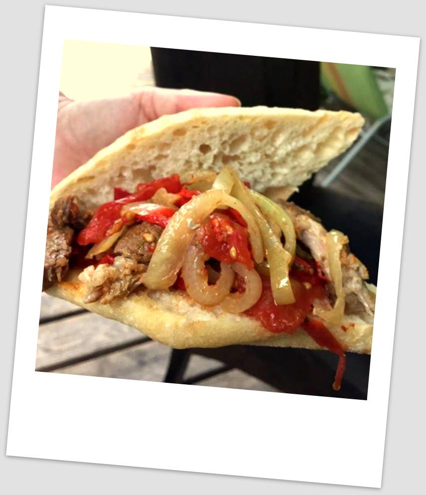 n auslegen. Wer mag kann auch die Seiten auskleiden. Dann den Dutch Oven auf die Seite legen und die erste Schicht Fleisch hineinlegen. Darauf einige Zwiebelringe sie Paprika, Tomaten und den Knoblauch verteilen. Fleisch und Gemüse weiter im Wechsel einschichten, bis der Dutch Oven gefüllt ist. Anschließend den Dutch Oven wieder normal hinstellen. Er sollte jetzt richtig prall gefüllt sein. - Den Deckel schließen. Unter den Dutch Oven 8 glühende Briketts und auf den Deckel 14 glühende Briketts legen. (Backrohr anfangs 250 Grad ca 45 min und dann für 4-6 Stunden auf 120 Grad, ihr könnt es aber auch über Nacht auf 80 Grad dahinschmurgeln lassen und am nächsten Tag zum Frühschoppen servieren)